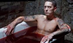 As for Eminem – he and I were part of a group who were going somewhere. We were the last to leave as we were closest to the event. I was just about to get into the shower when he hijacked it. I ended up taking a cold one. Nice Eminem – nice. Slim Shady Shower Stealer. Anyway, it turns out he prefers baths … in, um … red stuff.