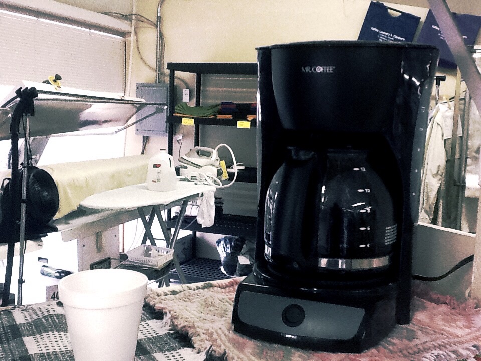 So I just walked by him (in time to see him folding his Y-Fronts – that was something I could have gone the rest of my life without seeing) and grabbed a cup of coffee.