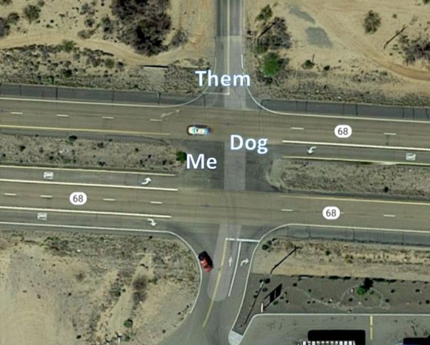 And as he arrived (barely) safely on the other side of the highway I realized that the ATV was minus a dog.
