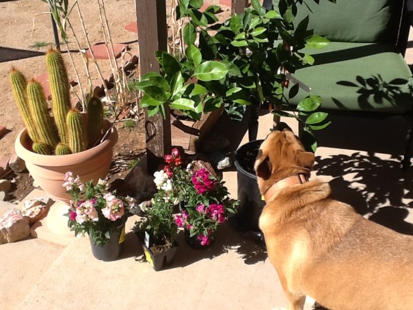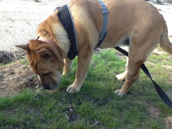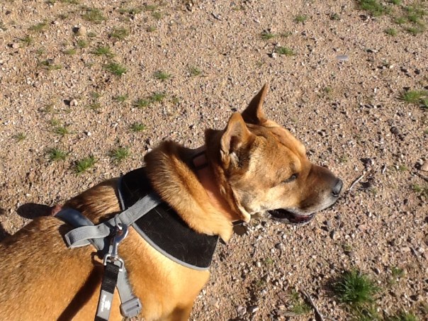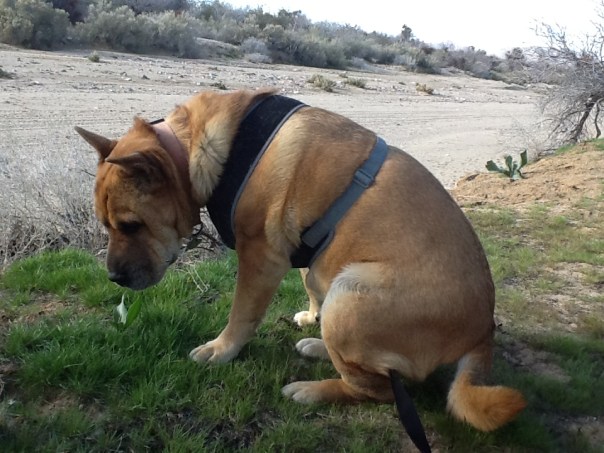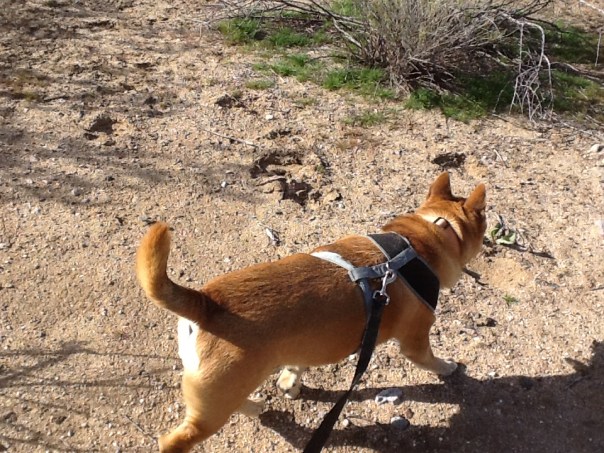 I let her lead the way – and she was sure to mark plenty of territory. Hopefully won’t be long before she can be off leash, at least there. But, with coyotes, steer, burros and snakes – not sure I want her to have that much freedom.