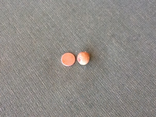 My little potato next to a penny.