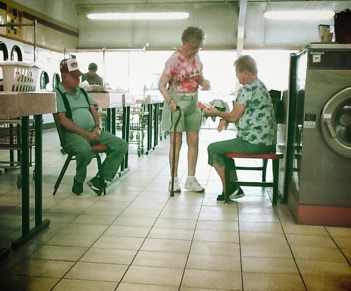 I’ve officially integrated with the herd. I have become an accepted member of the Sunday morning Laundromat gang.
