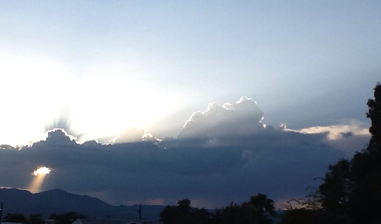 I actually did sit outside yesterday at sunset – and saw the most amazing cloud with sun streaming through it. I snapped a bad photo of it on my ipad (Butters fled) and shared it.