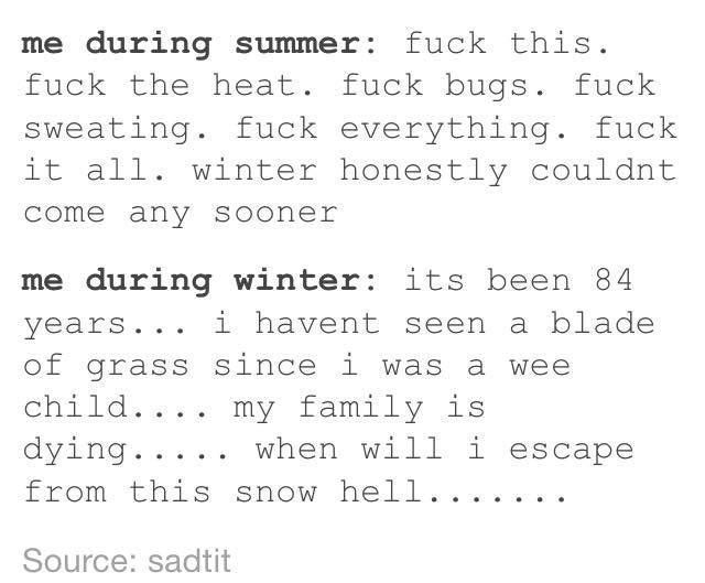 Truth be told, my long underwear was pink and I looked like a hermit crab without a shell. Have you ever seen that?? I have. My son used to have some and anytime they shed their shell, they wouldn’t make it into the plethora of ‘new choices’ and end up all crabby and shriveled and pinkish – kinda like a toe that had been in the bath too long and, yeah. Then, they died. I survived obviously, but did change this pic to black and white. Because, ew, shriveled hermit crab legs.