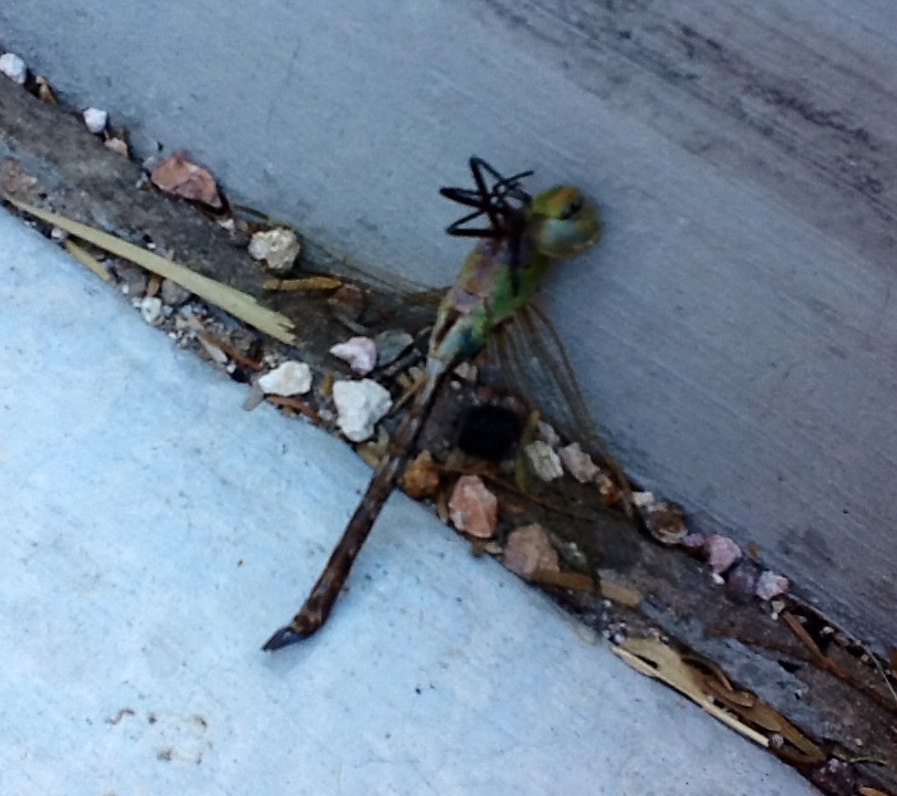 And Friday, oddly enough, I had been discussing dragonflies with a friend at work. I came out of the office and right next to my car, saw this poor little beauty. Strange though – one of those coincidences that gives me pause.