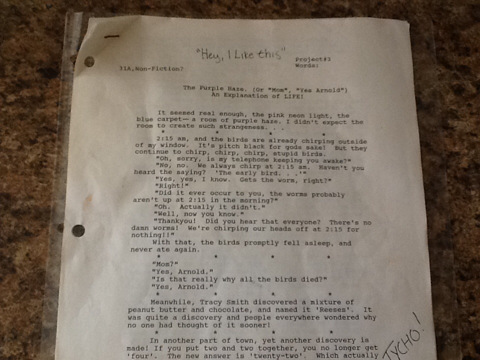 Back in the day, in Professor Mooney’s class, we had to make 20 copies of what we wrote for the creative writing class.
