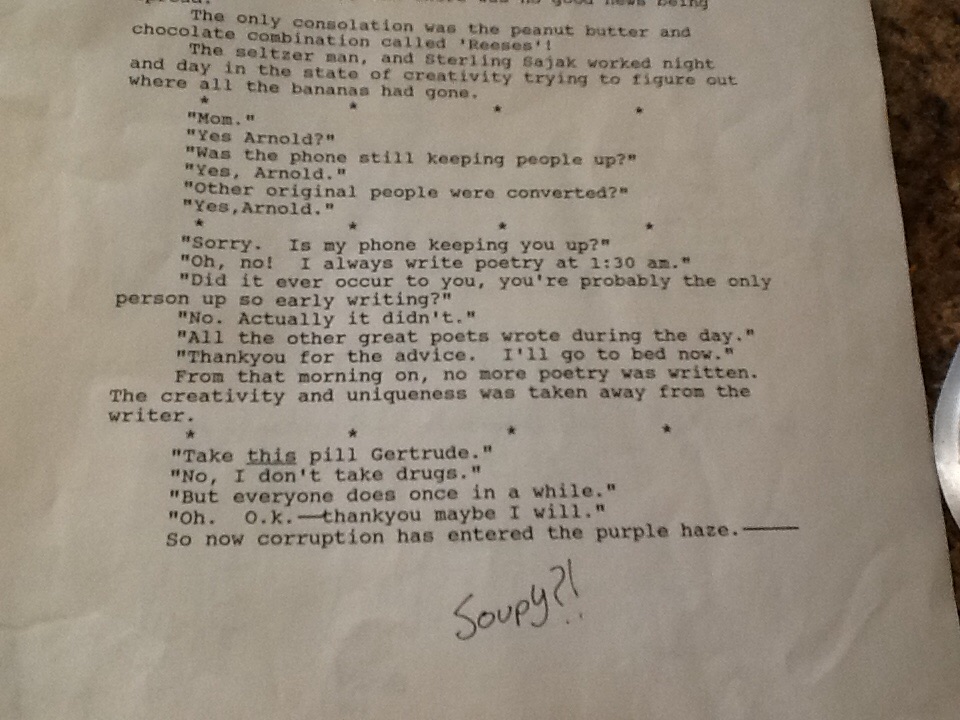After Jim and I reconnected, I searched for a long time for ‘Purple Haze’ – the piece I wrote in college that began our collaboration on a comic.