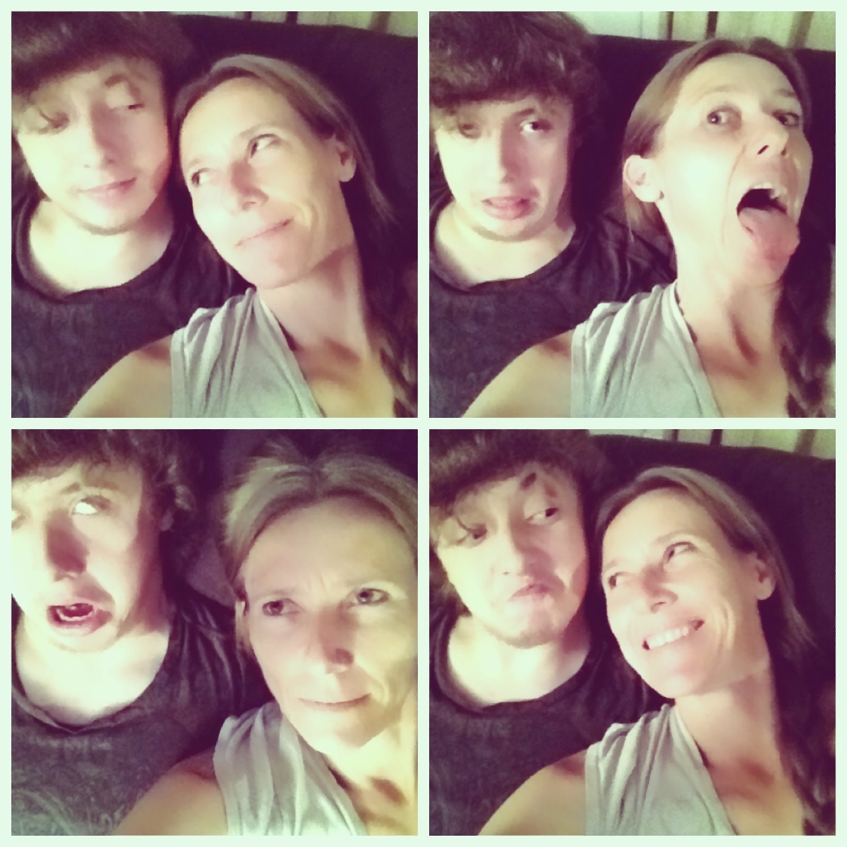 Watching funny YouTube videos and me … snapping silly pictures of us.