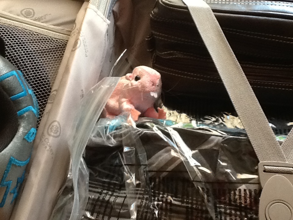 **Update!** I forgot to mention the most important part! I snuck a little something in his case … He can’t possibly go to England without a naked mole rat. Debauchery Soup is represented! 😉