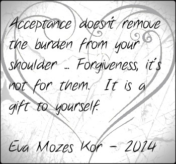 I had the great honor of speaking to someone yesterday who is, for me, the epitome of forgiveness. Mrs. Eva Mozes Kor.