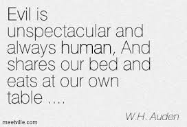 “Evil is unspectacular and always human, and shares our bed and eats at our own table …”