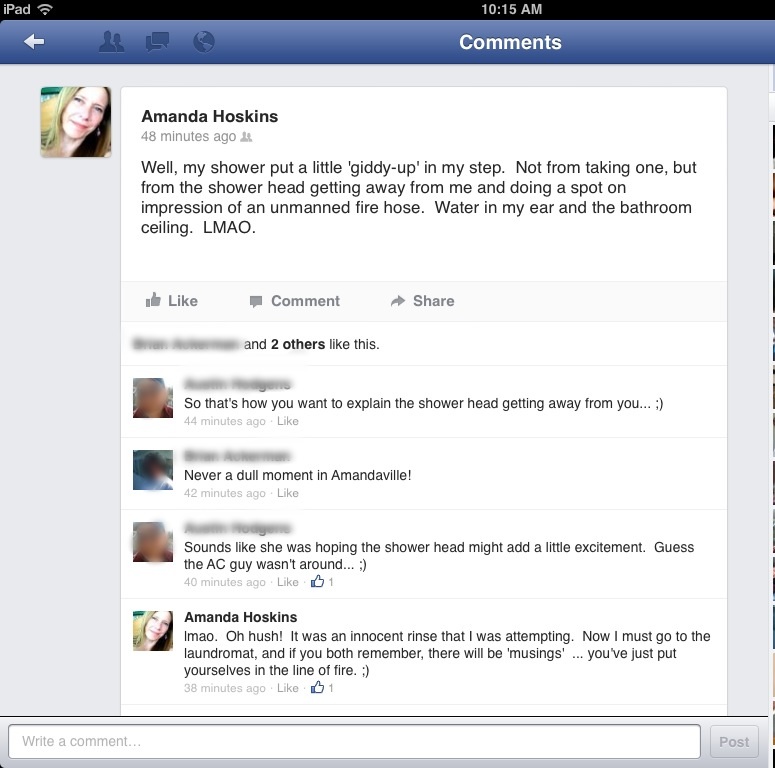 Names and faces have been blurred to protect the innocent. Okay, they’re not that innocent, but I shall protect them anyway – I look after people I care about. Even when they’re suggesting such naughty things.