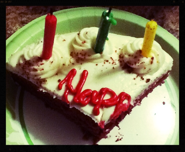 My son’s girlfriend turned 19 yesterday and when they returned from a day at her house and dinner – they sat and we chatted and laughed AND … she had brought me a piece of saved cake.